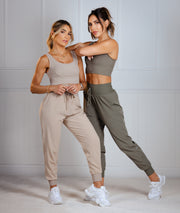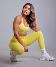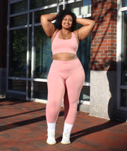 I absolutely love this set. Specially the one in pink color. The top is super stylish and I love the high rise leggings. I wear these all the time!:)