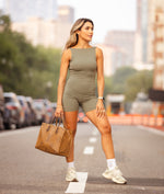 Step up your style with the Dare Romper. Crafted from a premium blend of 78% Nylon and 22% Spandex, this romper offers unmatched support and a second-skin feel. Designed to flatter your silhouette with a bold open-back detail and a sleek high neckline, it's perfect for more than just workouts. Whether you're headed to the gym, meeting friends, or enjoying a night out, this piece transitions effortlessly from activewear to chic everyday fashion. With the Dare Romper, you can showcase a stunning look on any occasion.