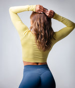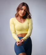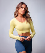 The Lush Long Sleeve Top offers a sophisticated twist on activewear basics. With its slim fit and thumbhole sleeves, it’s designed to stay in place through every movement. Made from 90% Nylon and 10% Spandex, it’s lightweight, breathable, and perfect for layering or wearing solo during cooler sessions.